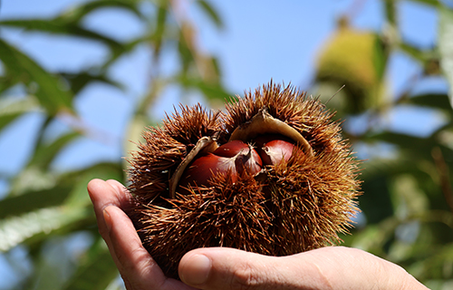 「これは昨日収穫した丹沢です。ぜひ恵那の栗を試してみてください。」