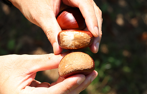 「ぽろたんはすぐ分かります。まず三角の形をしているということ。それから、後ろのお尻の”座(ざ)”の部分が白く小さいんです。他の栗はお尻を全部覆うように大きいんですが、ぽろたんはそれより小さい。」