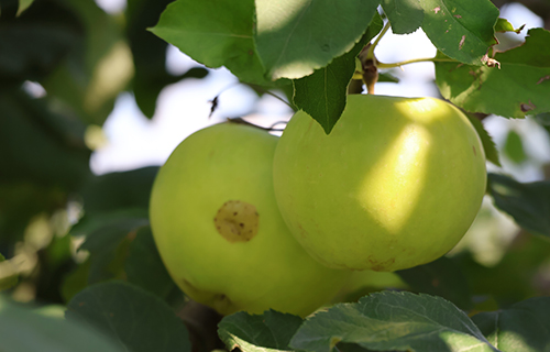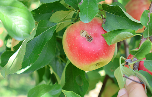 あたったときに小さかった痕跡も、果実が大きくなるにつれ、同じように大きくなる。