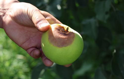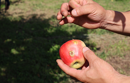「大森さん、ムーンルージュはね、この軟腐病があってね。申し訳ないけど、増やすことは無いかな。うまいりんごなんだけど。」