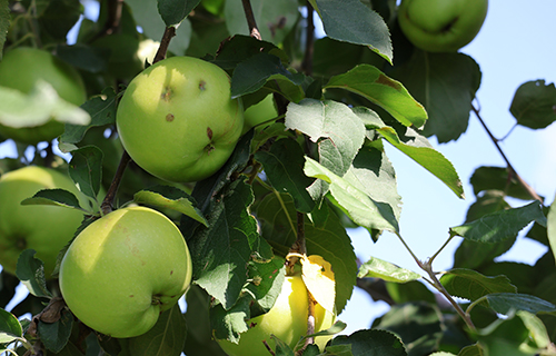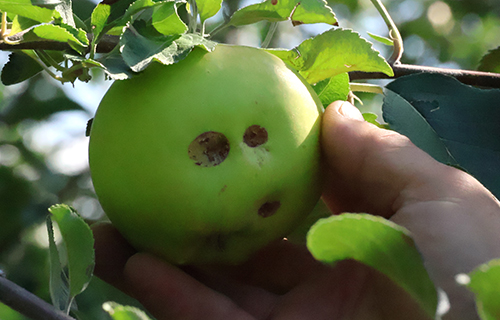 雹の跡もたくさんあるが、それよりも1/3くらい茶色に傷んだ実に目が行く。