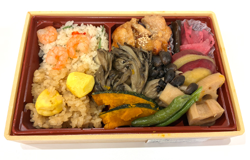 ■おこわ米八 松屋銀座100周年記念弁当 季節の野菜の揚げびたし 1p 1350円(税込)