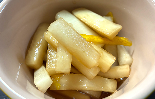 甘く酢漬けにした大根にゆずの風味を加えたものなのか、煮物にしてゆずの風味を加えたものなのか。