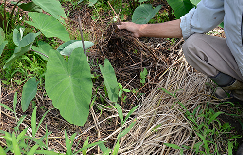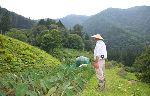 大杉さんが、八つ頭の畑の端に立つと、本当に3枚目の畑に落ちてしまうのではないかと、後ろからついて行った時、感じるくらいの険しい斜面だった。