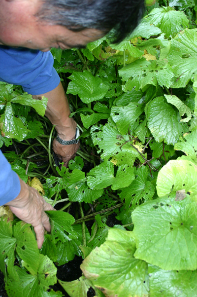 わさびの株は、数年たつと、大きくならず、親指サイズにしかならず、どこにあるか、収穫前から目星も付くからだ。
