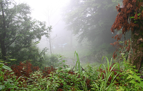 山の斜面のちょっと盆地のような、霧が立ち込める場所だった。