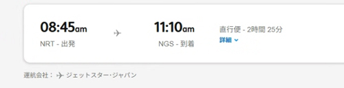 8時45分に成田を発った飛行機は、長崎空港に11時10分に着く。