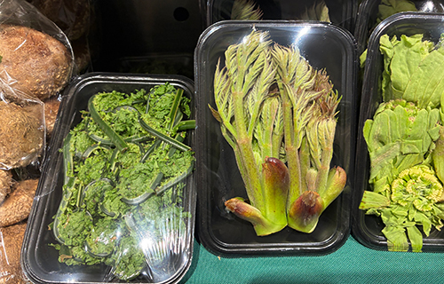秋田からは、ふきのとうに続いて、タラの芽とこごみが入荷。